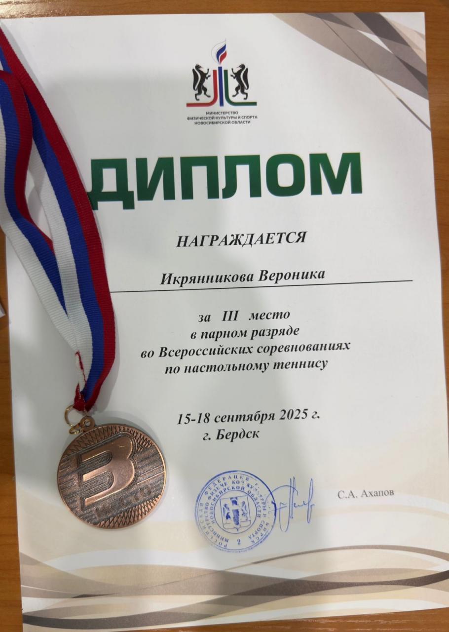 В Новосибирской области состоялись всероссийские соревнования по настольному теннису среди мужчин и женщин. Липецкую область представляли воспитанники КНТ «Липецк». Вероника Икрянникова в парном женском разряде вместе со своей напарницей Валиахметовой Лианой из Санкт-Петербурга завоевали бронзовую награду. Поздравляем спортсменку с отличным выступлением!