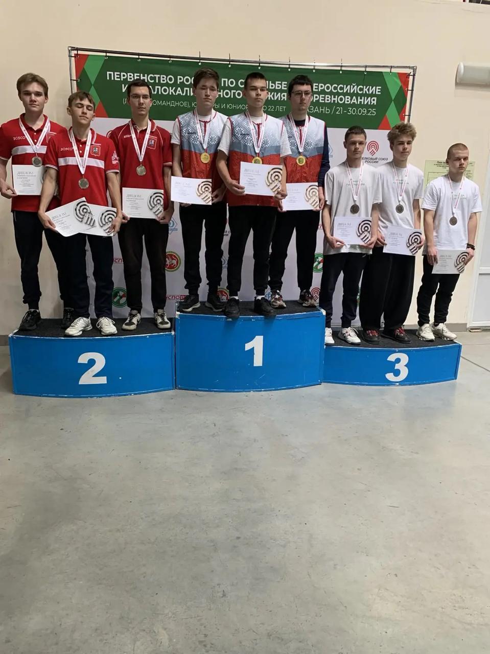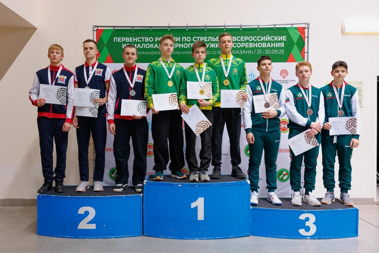 Иван Семенихин, Роман Спиридонов и Владислав Ионов стали серебряными призерами первенства страны в командном упражнении «малокалиберный пистолет, 50 м».