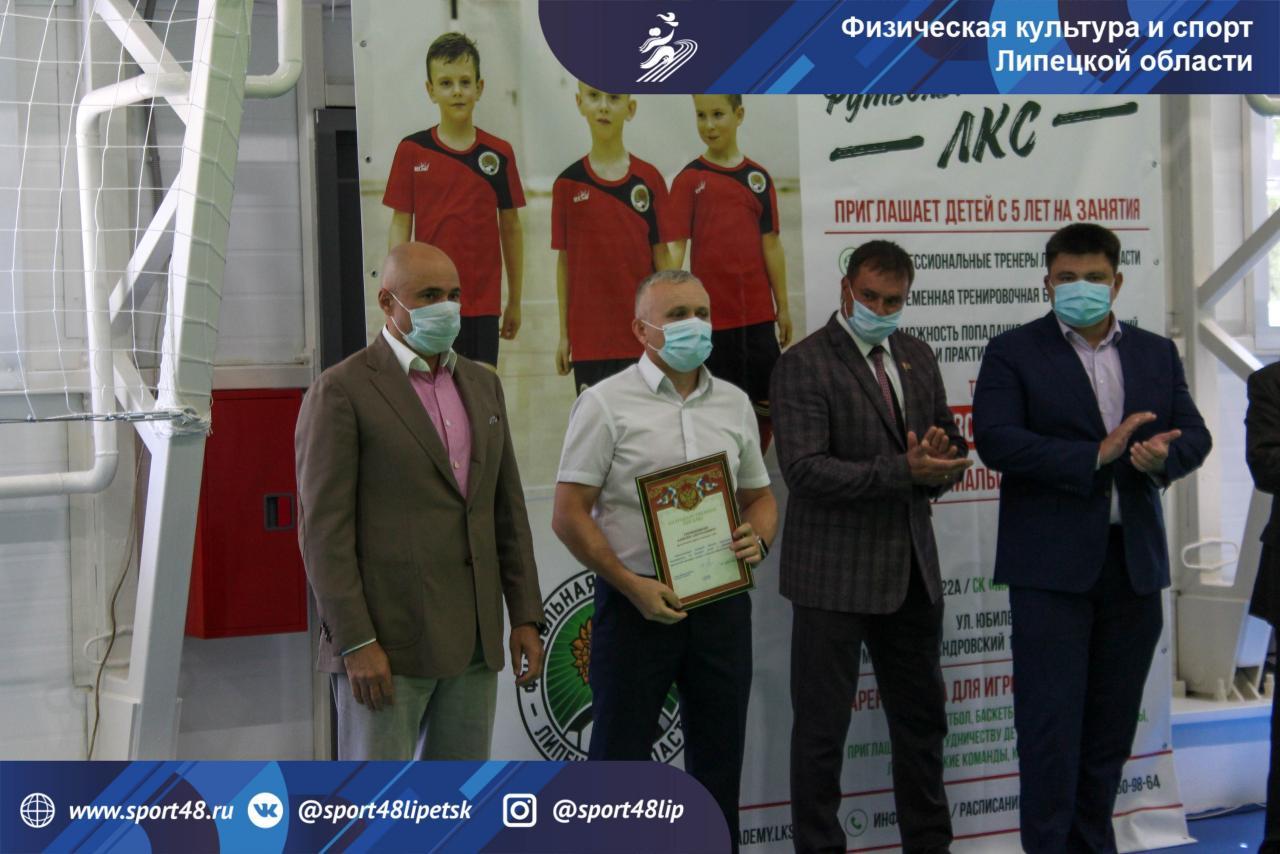 Почетные гости наградили заслуженными медалями победителей и призеров недавно завершившегося первенства Липецкой области по мини-футболу среди юношей 2010-2011 г.р. и их тренера Артура Мустафаева. Команды получили в подарок от администрации региона футбольные мячи и смогли первыми опробовать новую универсальную площадку, проведя товарищеский матч.